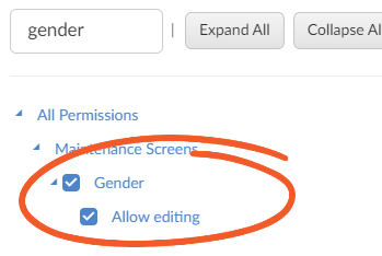 - For add/edit access to Gender Types, tick Allow editing
