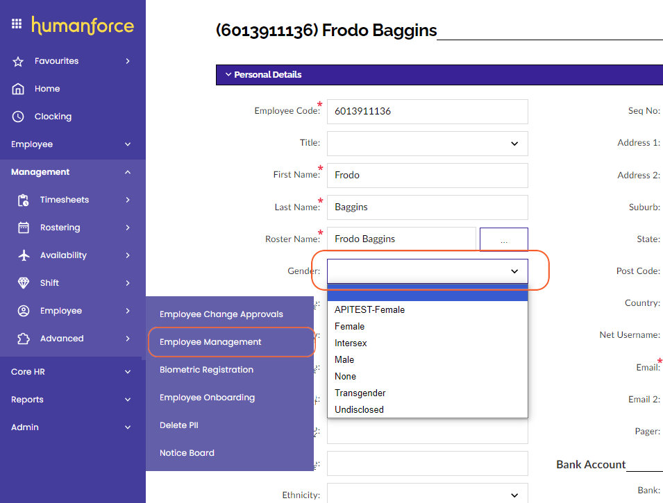 - A Gender Type cannot be deleted where it is assigned to any employee record, whether the employee record is active or terminated.
