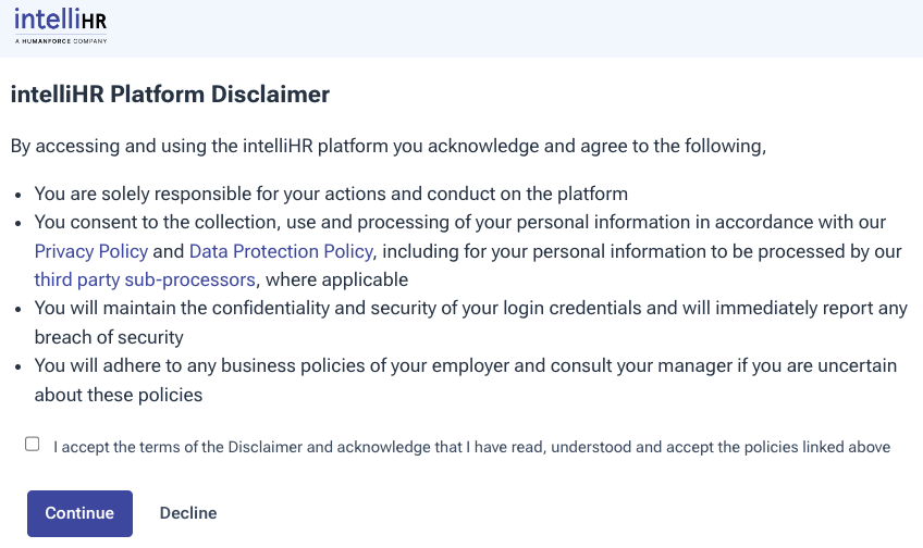 The coverage is still the same however, we are making it easier for users to understand Humanforce's data privacy and retention policies and who our sub processors are with direct links in the User Disclaimer - Privacy Policy, Data Protection Policy, and third party sub-processors.