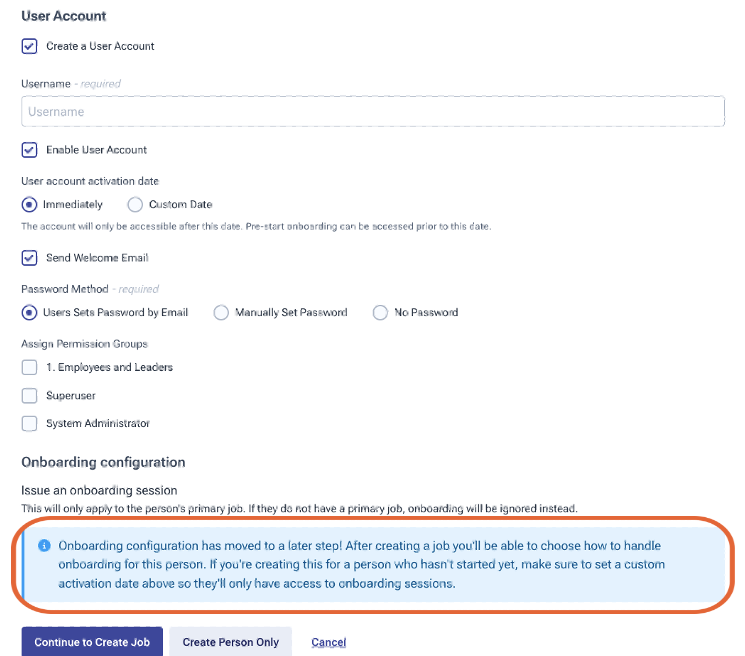 - Issue multiple onboarding sessions for the same person (if they have multiple jobs), however, only 1 active onboarding session can be in progress per job.