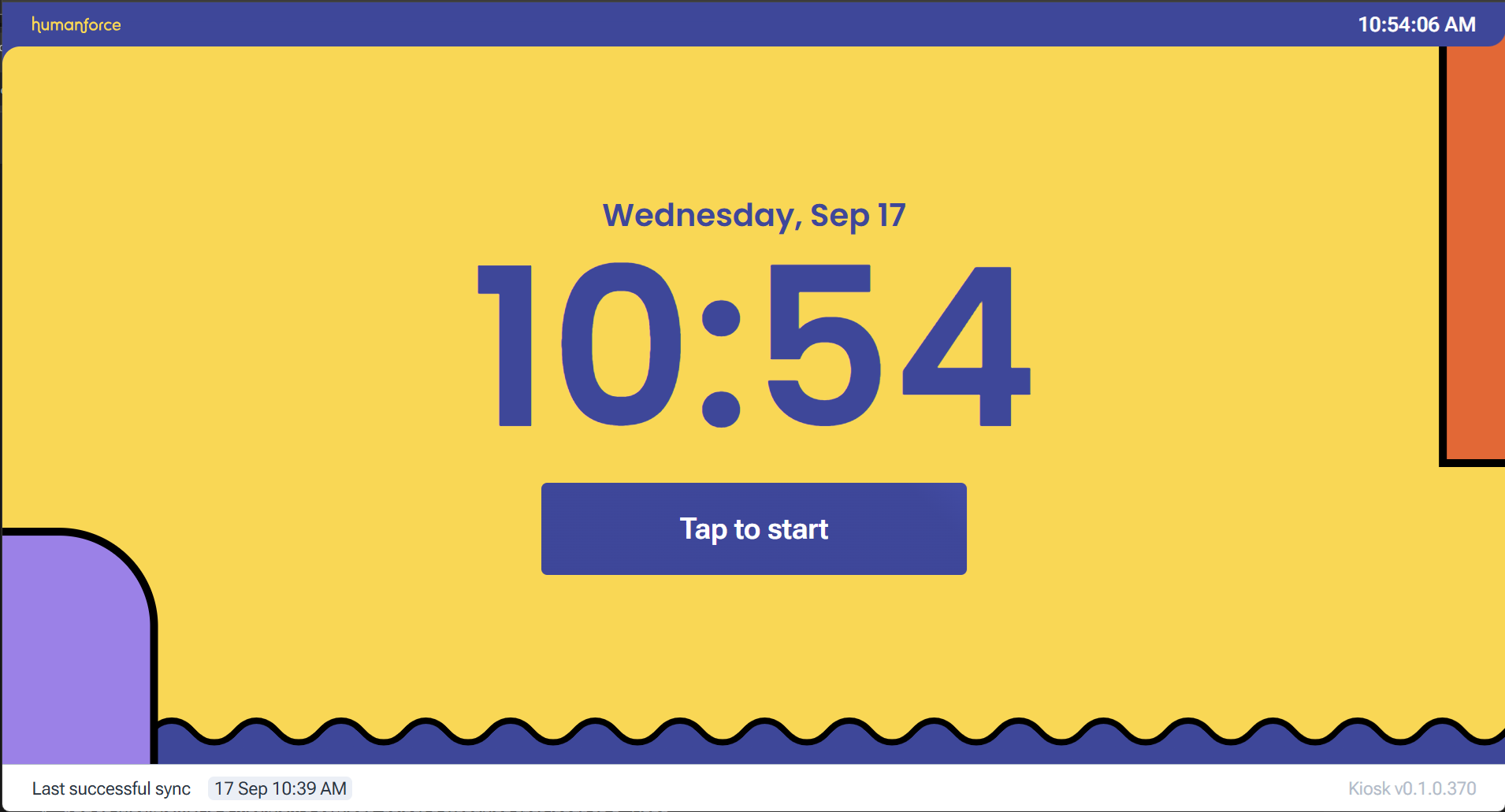 The Kiosk captures all clocking events, holding them until synchronization with the cloud system can occur - as and when a connection becomes available. Users do not need to initiate the sync - the kiosk automatically detects connectivity and pushes data to the cloud in the background (as well as pulling down new rosters).