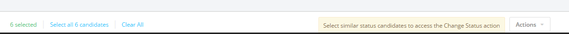 Please note: Candidate's status can only be changed in bulk action if they are in the same stage.