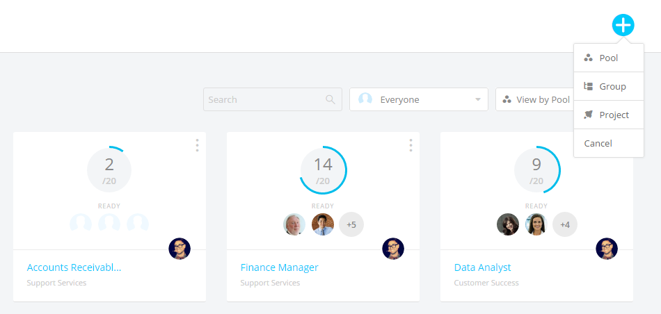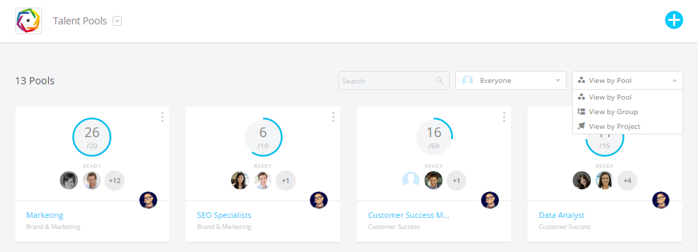 1. Change the Talent Pool view to View by Pool by selecting the drop-down menu at the top right-hand corner.