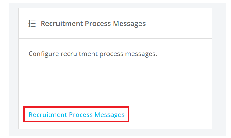 - Click on the Recruitment Process Message tile to access the configuration screen.
