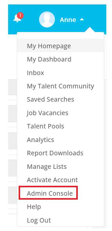 - Hover over you name in the upper right hand corner and select 'Admin Console' from the menu that appears.