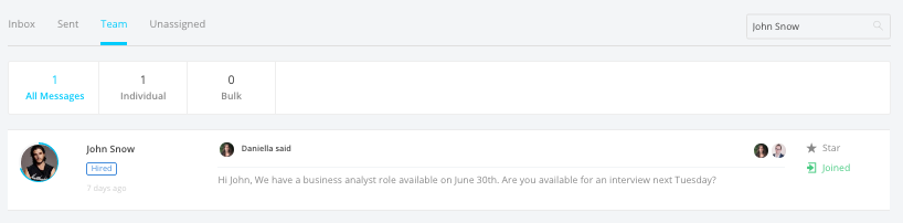 Know exactly who you're looking for in your Inbox messages? Use the search feature to find talent with their name or email!