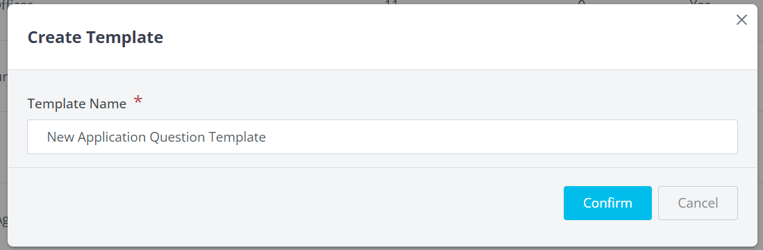 - Click the 'Create Template' button to create a new Application Question Template.