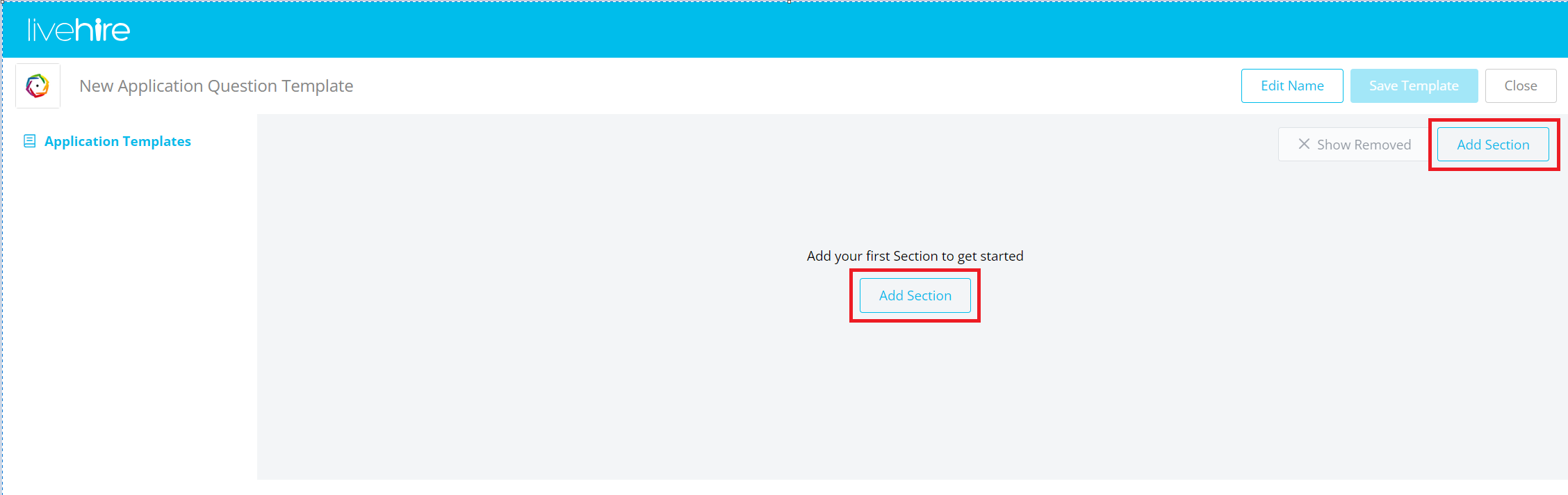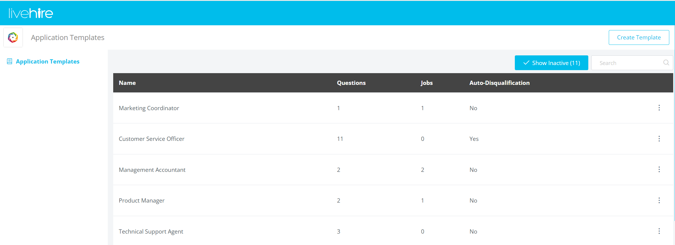 If you've already had Application Question Templates set up by the LiveHire team, you'll see them here in a tabular view.