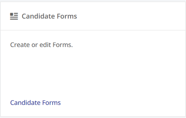To get started, navigate to the Admin Console and click on the tile labelled Candidate Forms.