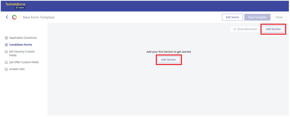 - Before adding questions, you'll need to create a Section. Sections are used to group questions that are thematically similar. If you only need one section, Form Questions is good name to use. Other use cases for multiple sections might be a Section called Diversity, Equity & Inclusion or Compliance.