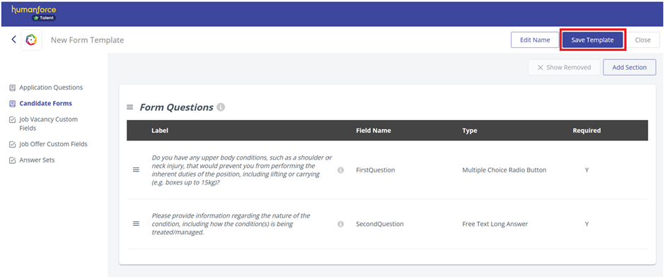 - Once you're happy with your Form Template, click the Save Template button. It can now be added to jobs via the Forms tab when editing the job details.