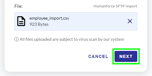 Employee Details Imports can be performed on a one-off basis by uploading a file from your computer, or on an ongoing basis by targeting files uploaded to your Humanforce sFTP folder.