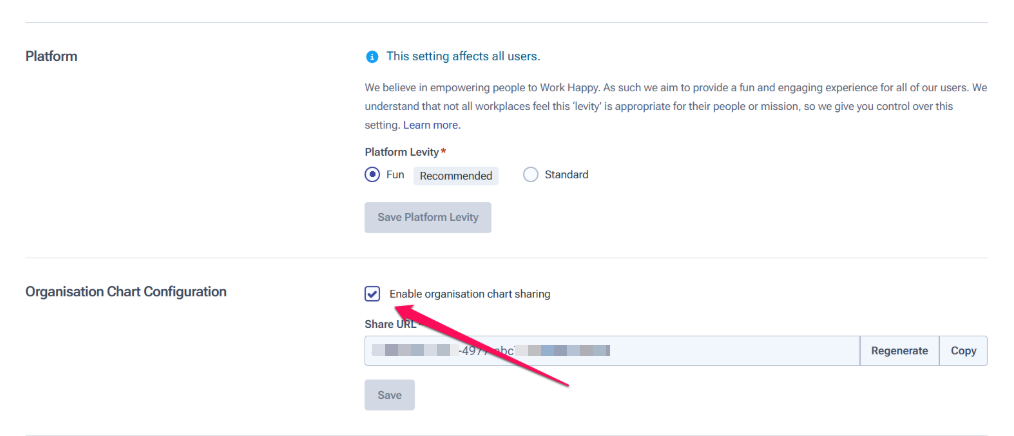 You can also easily share the Organisation Chart (if you have the relevant permissions to do so) by clicking 'Share'.