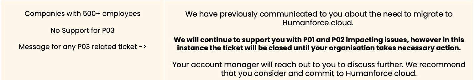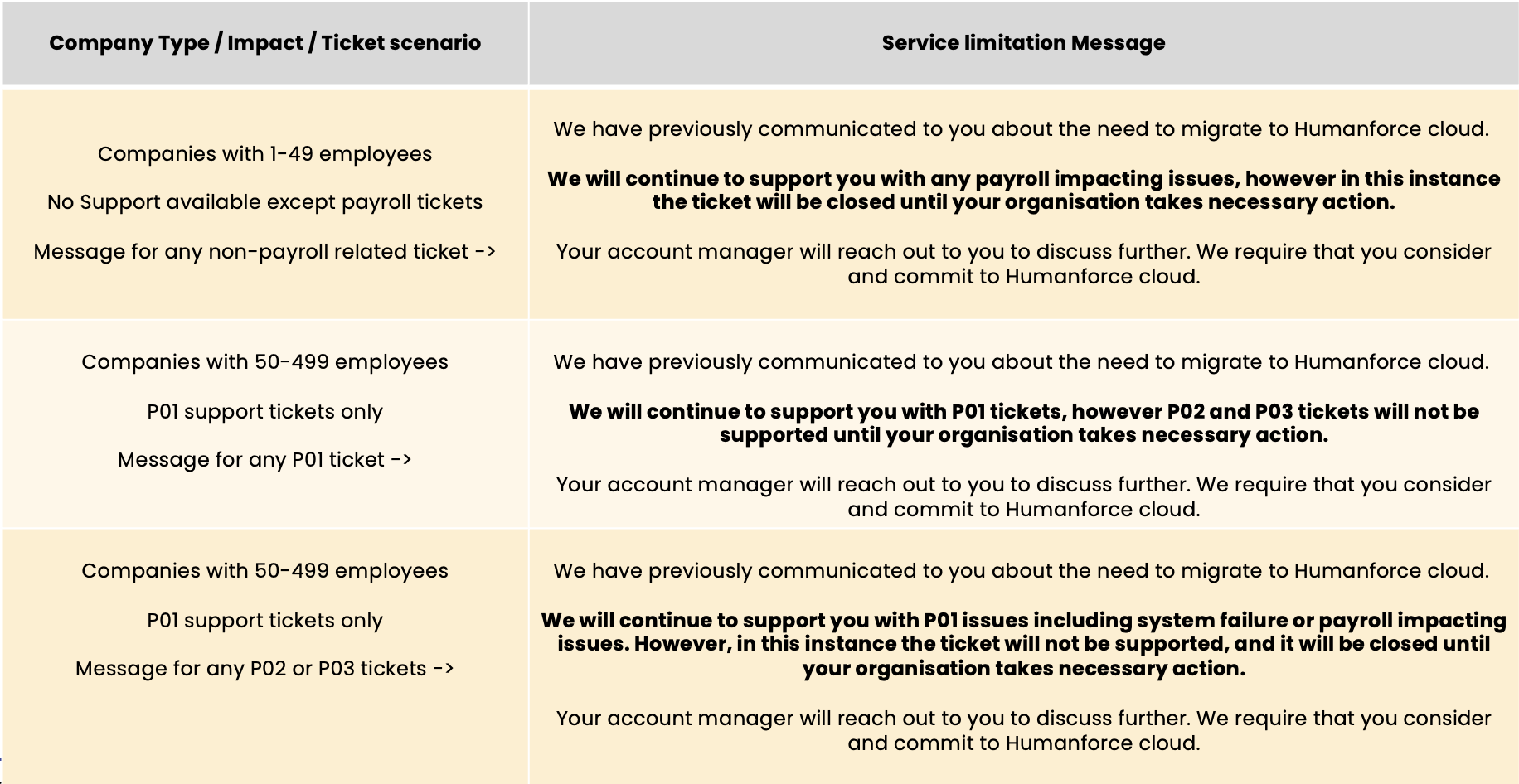 Commencing 1st June 2024, Humanforce will implement for following new service support limitations with our On-Premise customers.